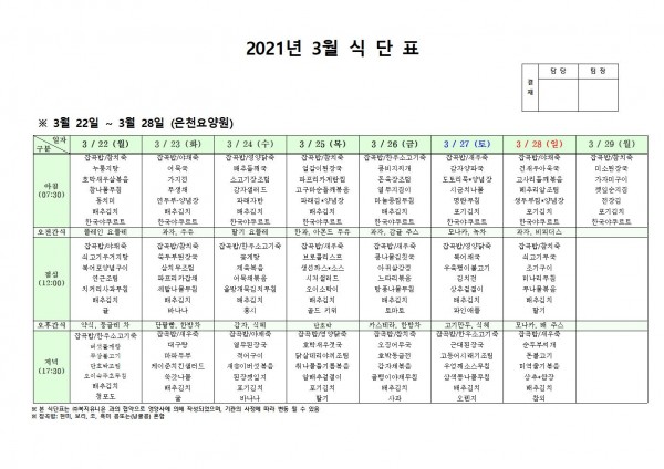 3월 넷째주 식단표 페이지 정보 작성자 은천노인복지회 작성일21-03-18 17:41 조회144,016회 댓글0건 관련링크 이전글 다음글 목록 답변 본문 3월 넷째주 식단표 이전글 다음글 목록 답변