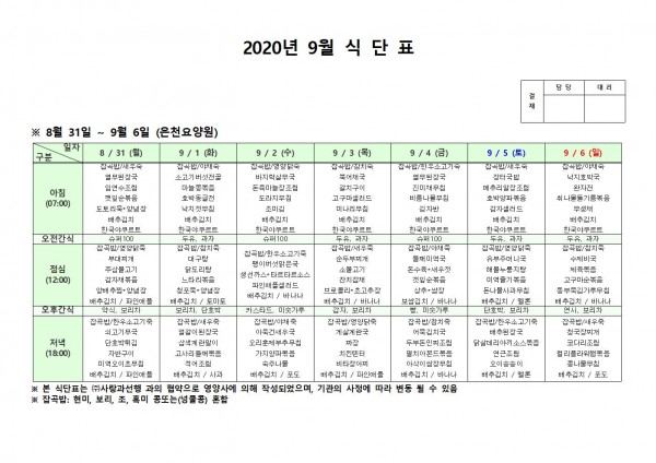 9월 첫째주 식단표 페이지 정보 작성자 은천노인복지회 작성일20-09-07 14:40 조회163,135회 댓글0건 관련링크 이전글 다음글 목록 답변 본문 * 이전글 다음글 목록 답변
