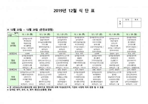 12월 넷째주 식단표 페이지 정보 작성자 은천노인복지회 작성일19-12-30 14:32 조회189,031회 댓글0건 관련링크 이전글 다음글 목록 답변 본문 12월 넷째주 식단표입니다 이전글 다음글 목록 답변