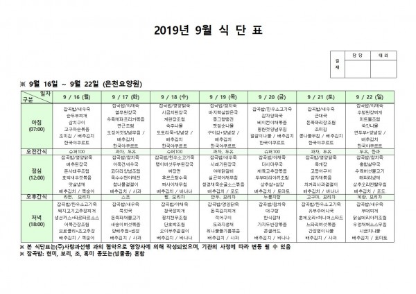 9월 셋째주 식단표 페이지 정보 작성자 은천노인복지회 작성일19-09-23 13:27 조회196,508회 댓글0건 관련링크 이전글 다음글 목록 답변 본문 . 이전글 다음글 목록 답변