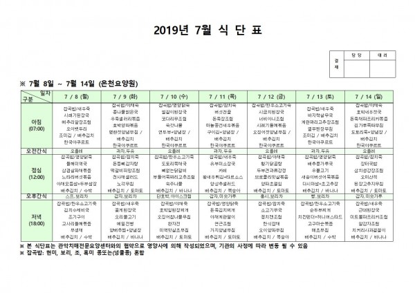 7월 둘째주 식단표 페이지 정보 작성자 은천노인복지회 작성일19-07-15 10:56 조회199,060회 댓글0건 관련링크 이전글 다음글 목록 답변 본문 7월 둘째주 식단표 이전글 다음글 목록 답변