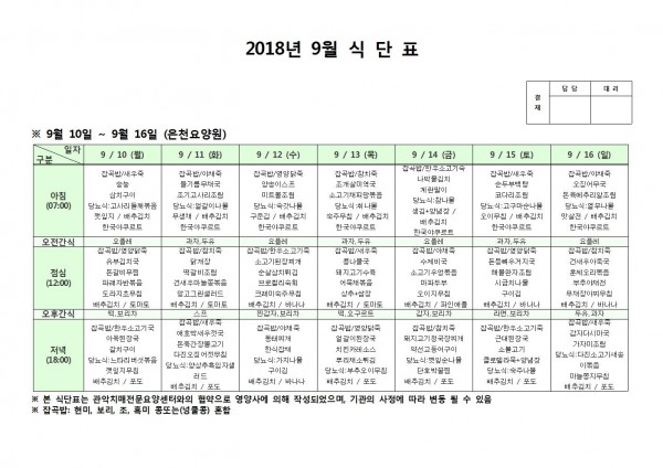 9월 둘째주 식단표 페이지 정보 작성자 은천노인복지회 작성일18-09-18 09:52 조회207,030회 댓글0건 관련링크 이전글 다음글 목록 답변 본문 9월 둘째주 식단표 이전글 다음글 목록 답변