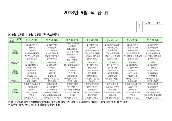 9월 셋째주 식단표 페이지 정보 작성자 은천노인복지회 작성일18-10-08 11:05 조회206,337회 댓글0건 관련링크 이전글 다음글 목록 답변 본문 9월 셋째주 식단표 이전글 다음글 목록 답변