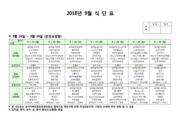 9월 넷째주 식단표 페이지 정보 작성자 은천노인복지회 작성일18-10-08 11:06 조회206,744회 댓글0건 관련링크 이전글 다음글 목록 답변 본문 9월 넷째주 식단표 이전글 다음글 목록 답변