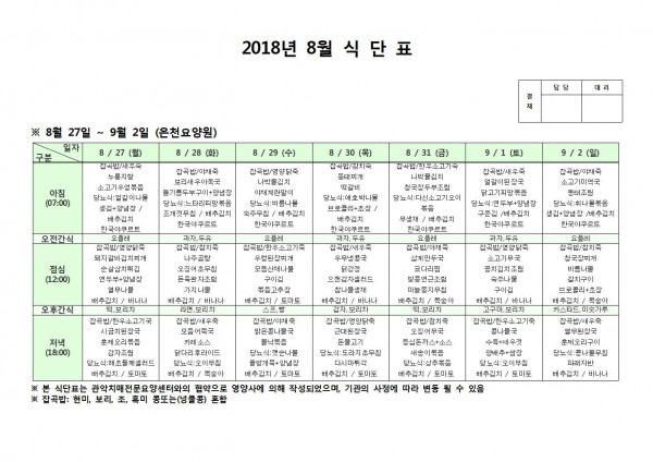 8월 다섯째주 식단표 페이지 정보 작성자 은천노인복지회 작성일18-09-11 09:27 조회208,113회 댓글0건 관련링크 이전글 다음글 목록 답변 본문 8월 다섯째주 기단표 이전글 다음글 목록 답변