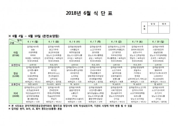 6월 둘째주 식단표 페이지 정보 작성자 은천노인복지회 작성일18-06-11 14:23 조회208,282회 댓글0건 관련링크 이전글 다음글 목록 답변 본문 6월 둘째주 식단표 이전글 다음글 목록 답변