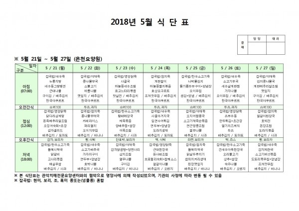 5월 넷째주 식단표 페이지 정보 작성자 은천노인복지회 작성일18-06-07 10:39 조회209,273회 댓글0건 관련링크 이전글 다음글 목록 답변 본문 5월 넷째주 식단표 이전글 다음글 목록 답변