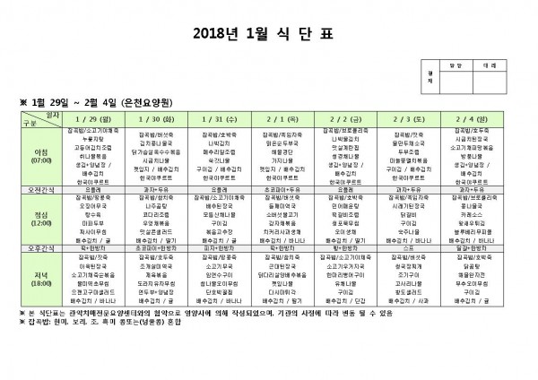 1월 다섯째주 식단표 페이지 정보 작성자 은천노인복지회 작성일18-01-31 13:35 조회196,005회 댓글0건 관련링크 이전글 다음글 목록 답변 본문 1월 다섯째주 식단표 이전글 다음글 목록 답변