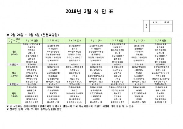 3월 첫째주 식단표 페이지 정보 작성자 은천노인복지회 작성일18-02-27 16:10 조회197,547회 댓글0건 관련링크 이전글 다음글 목록 답변 본문 3월 첫째주 식단표 이전글 다음글 목록 답변