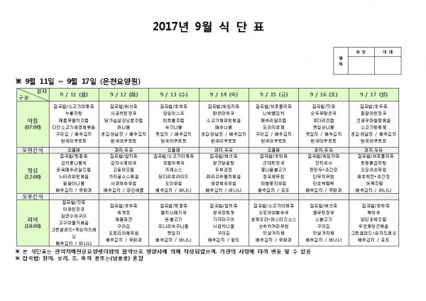 9월 둘째주 식단표 페이지 정보 작성자 은천노인복지회 작성일17-09-11 17:01 조회183,778회 댓글0건 관련링크 이전글 다음글 목록 답변 본문 9월 둘째주 식단표 이전글 다음글 목록 답변