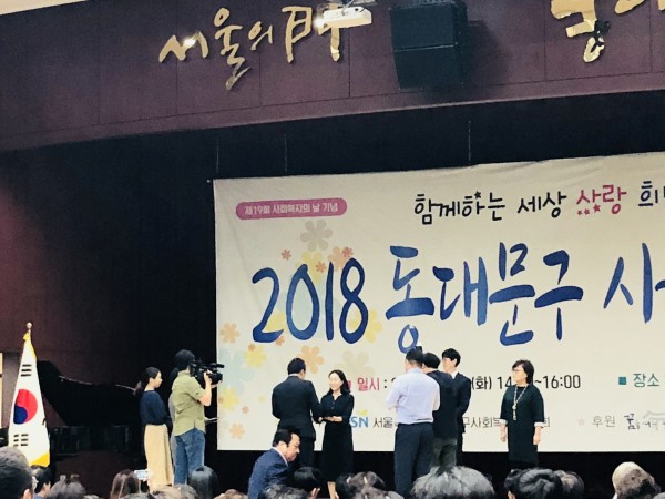 19회사회복지의 날 페이지 정보 작성자 은천노인복지회 작성일19-03-18 11:33 조회11,060회 댓글0건 관련링크 목록 답변 본문 2018년 9월 11일 동대문구청 다목적홀에서 동대문구사회복지대회를 실시하였으며,은천재가노인지원센터장이 국회위원상을 수상하였다. 목록 답변