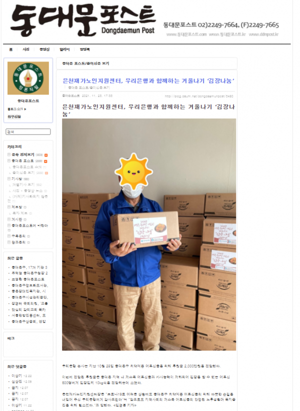 동대문포스트 김장기사 페이지 정보 작성자 은천노인복지회 작성일21-12-29 17:25 조회9,354회 댓글0건 관련링크 https://blog.daum.net/dongdaemunpost/3480 5546회 연결 목록 답변 본문 동대문포스트에 김장나눔 행사 기사입니다~ 목록 답변