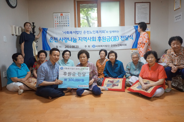 경로당 돕기 후원 페이지 정보 작성자 은천노인복지회 작성일17-01-16 16:39 조회38,950회 댓글0건 관련링크 이전글 다음글 목록 답변 본문 동대문 지역 열악한 경로당을 찾아서은천재가노인지원센터에서 후원금을 전달하였습니다.창방경로당, 전농3분회경로당, 방배경로당, 청량리현대경로당 이전글 다음글 목록 답변