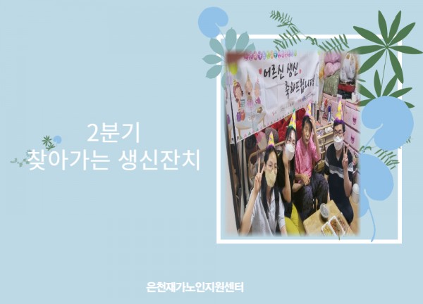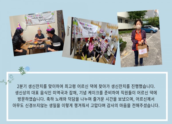 [재가노인지원서비스] 2분기 찾아가는 생신잔치 페이지 정보 작성자 은천노인복지회 작성일22-07-06 13:26 조회18,540회 댓글0건 관련링크 이전글 다음글 목록 답변 본문 2분기 찾아가는 생신잔치 이전글 다음글 목록 답변