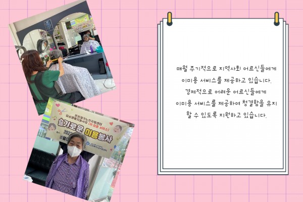 [재가노인지원서비스] 이미용 서비스 페이지 정보 작성자 은천노인복지회 작성일22-07-06 13:27 조회18,352회 댓글0건 관련링크 이전글 다음글 목록 답변 본문 6월 이미용 서비스 이전글 다음글 목록 답변