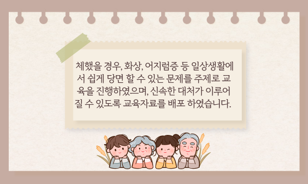 [재가노인서비스] 대상자교육_응급처치교육 페이지 정보 작성자 은천노인복지회 작성일22-03-03 11:43 조회19,755회 댓글0건 관련링크 이전글 다음글 목록 답변 본문 은천재가노인지원센터 대상자 어르신들에게 응급처치교육을 진행하였습니다. 이전글 다음글 목록 답변