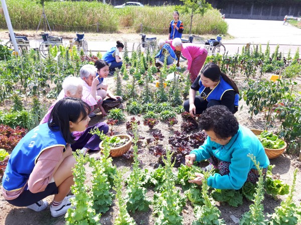 [특화프로그램]해성컨벤션고등학교와 함께하는 텃밭가꾸지 페이지 정보 작성자 은천노인복지회 작성일17-06-14 18:08 조회8,174회 댓글0건 관련링크 이전글 목록 답변 본문 중랑천 텃밭에서 해성국제컨벤션고 학생들과 함께 상추를 뜯어왔습니다. 뜯어온 상추는 저녁식사때 어르신들 모두 나누어 드셨습니다. 이전글 목록 답변